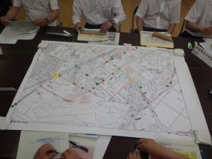 (地図を広げて危険箇所について共有化を図ります)